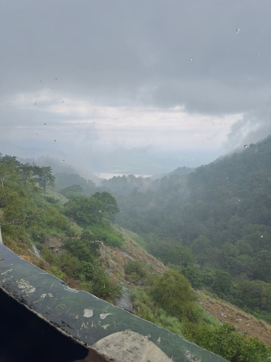 Amazing view of mountains with snow and rain